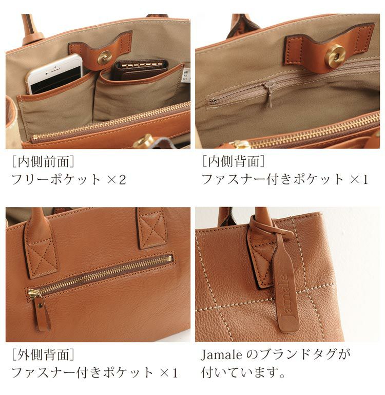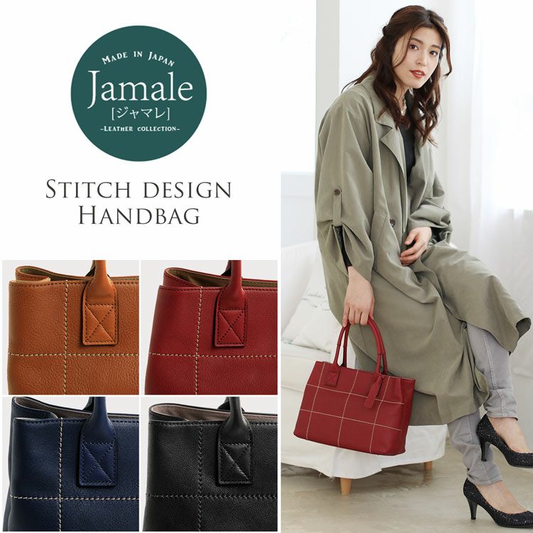 | 商品名:Jamale/ジャマレ 牛革 ハンドバッグ 日本製 ステッチデザイン 全4色 |