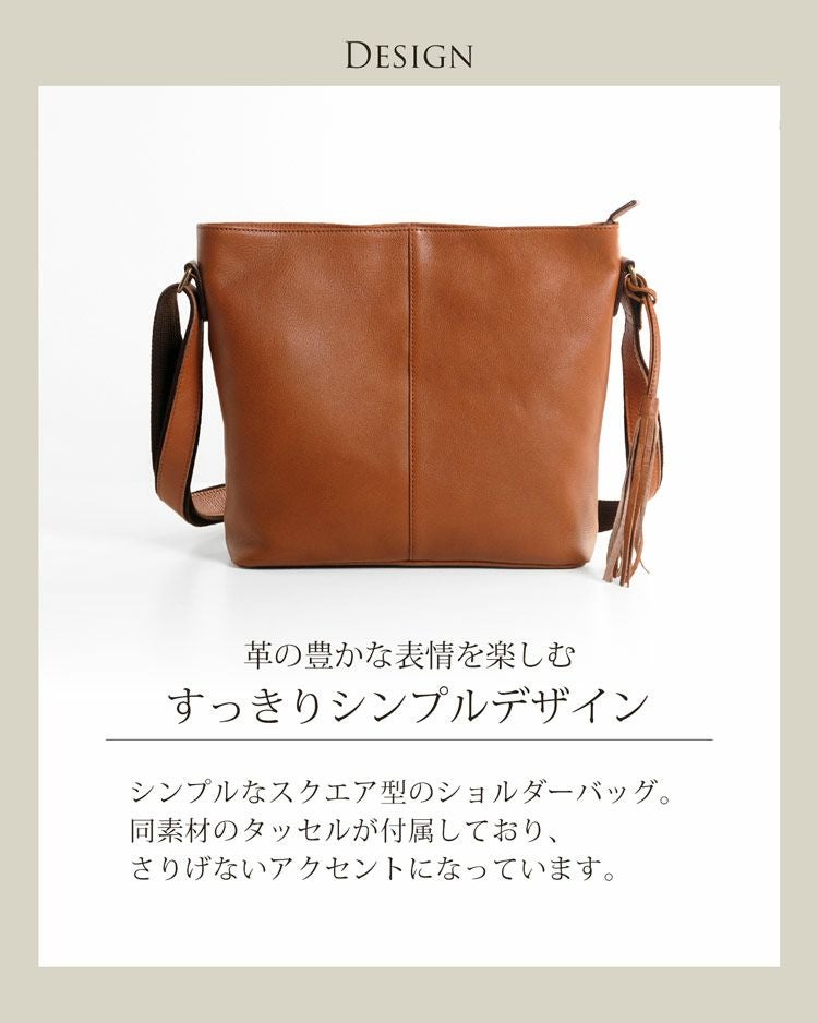 牛革の豊かな表情を生かした、シンプルなスクエア型のショルダーバッグ。