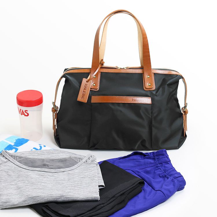 HALEINE ナイロン 栃木レザー ミニ ボストンバッグ ジム スポーツ 習い事