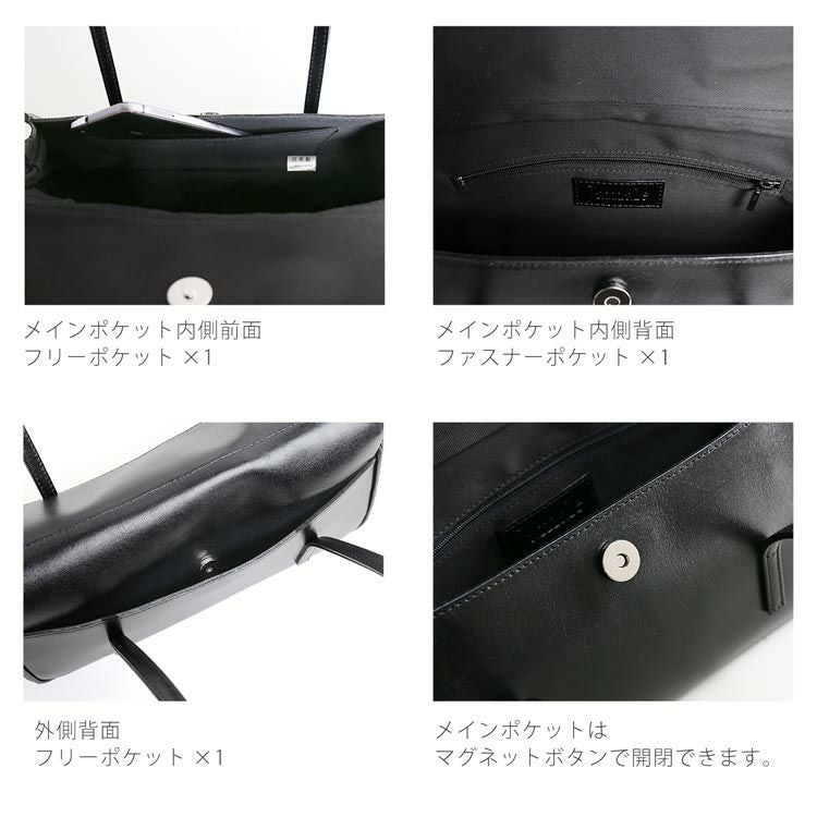 シンプルな収納箇所に小物収納もあり、使いやすいカバン。