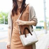 ショルダーベルト付きで斜め掛けもできるミニサイズのトートバッグ。