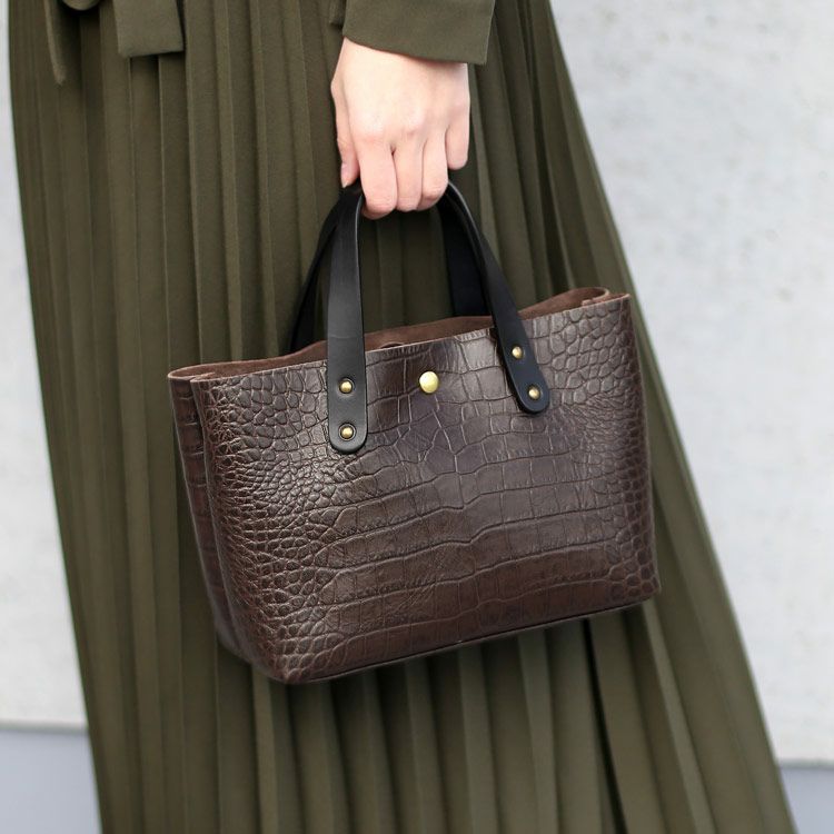クロコダイルの型押しが高級感を演出し、カジュアルにもきれいめにも使えます。