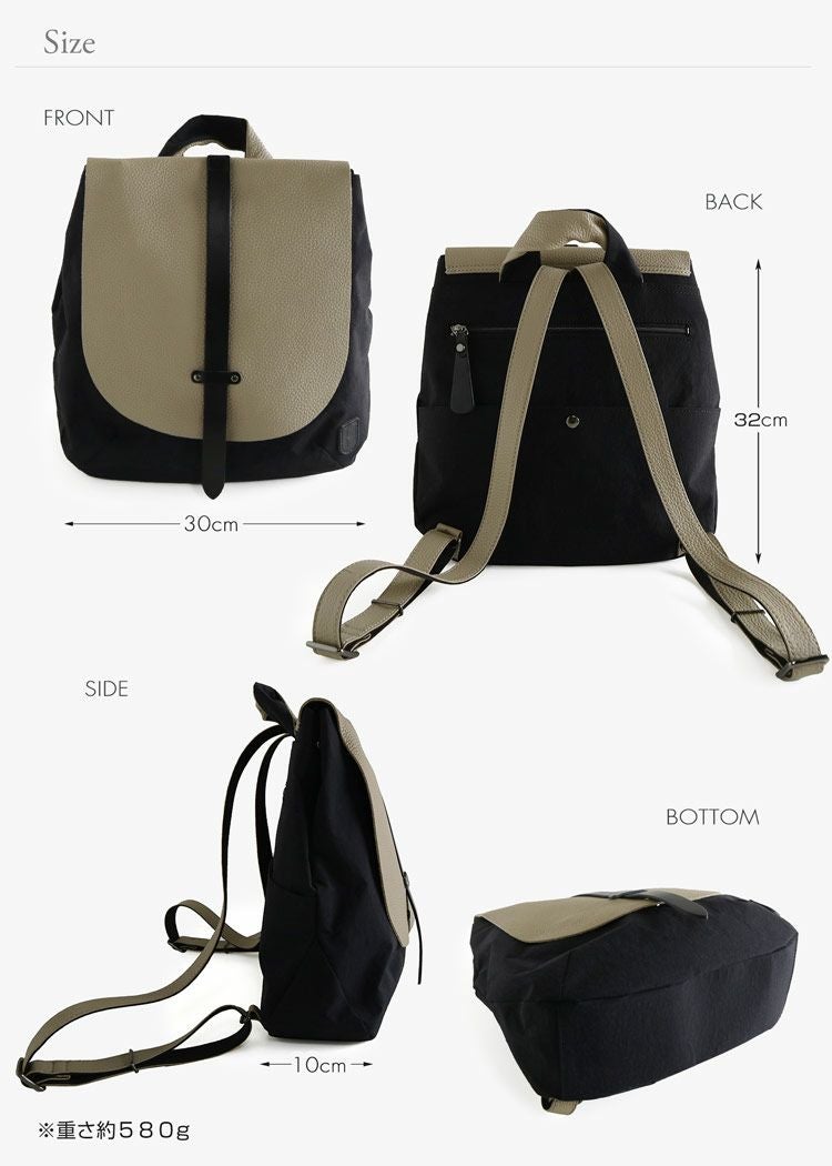 イタリアンレザー、栃木レザー、新感覚のナイロン、3つの素材を生かしてデザインされたおしゃれなリュックです。