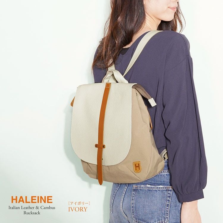 レザー リュック レディース ファブリック ナイロン 軽量 ブランド HALEINE 日本製 イタリア製 本革 牛革 バッグ 栃木レザー ヌメ革 a4 おしゃれ 通学 通勤 軽い ギフト プレゼント ギフト ladiesbag