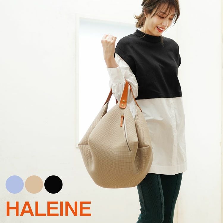 HALEINE ハンドバッグ レディース オリガミバッグ Lサイズ 洗える 畳める 大容量 バッグ メッシュ ヌメ革 日本製 ウォッシャブル ダブルラッセル ORIGAMI マザーズバッグ 国産 軽いギフト プレゼント (07000459r)
