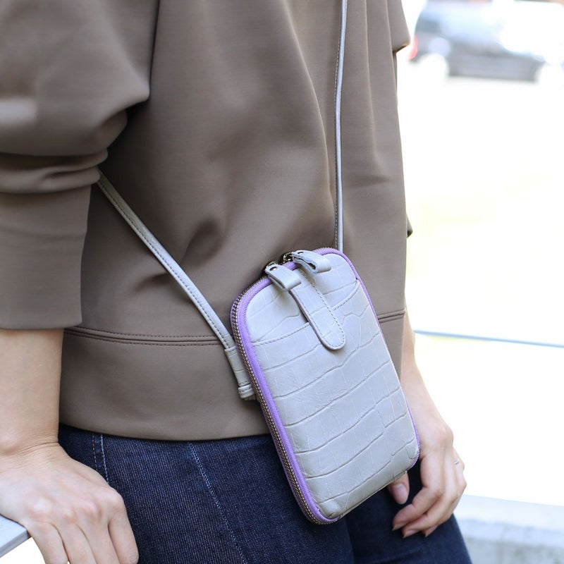 ※キーワード:お財布ショルダーバッグ ウォレットバッグ スマホポーチ スマホショルダーバッグ スマホが入る お財布バッグ クロコ型押し モカ グレー