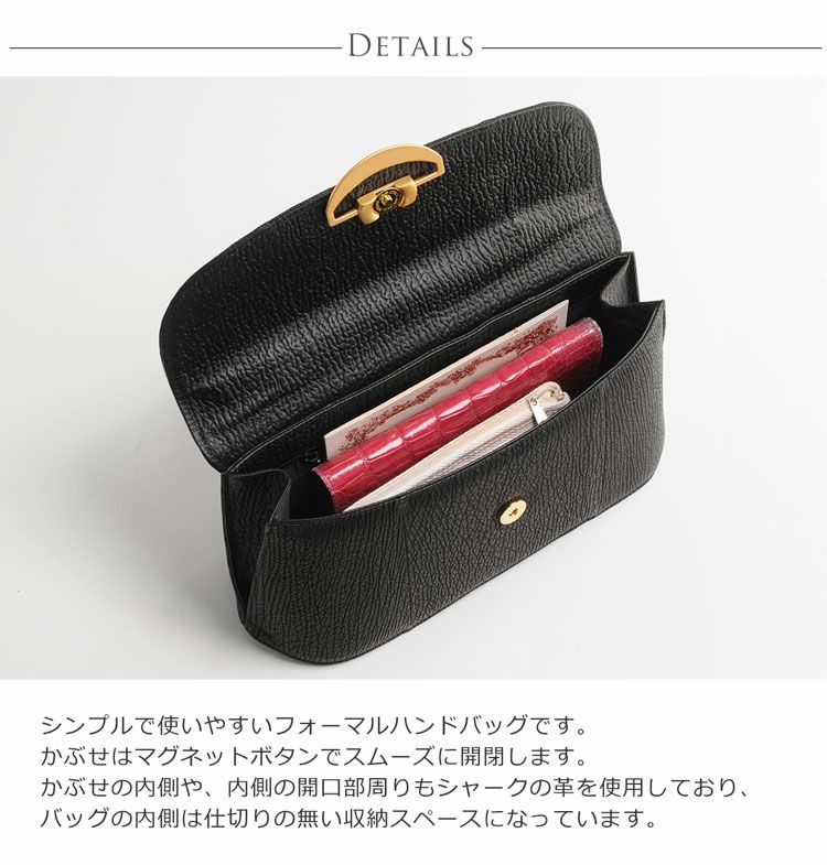 シャーク フォーマル ハンドバッグ 留め具2WAY ゴールド金具 軽量 ブラック