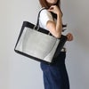 シボ型押しをした牛革で仕立てた大きなトートバッグです。