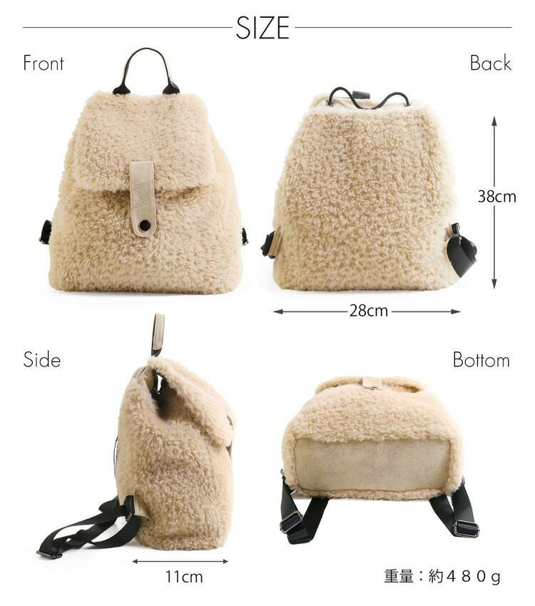 ウール ムートン リュック サック 軽量 秋冬 フェイクファー バックパック カバン かわいい 大人 ふわふわ 暖か ギフト ladiesbag