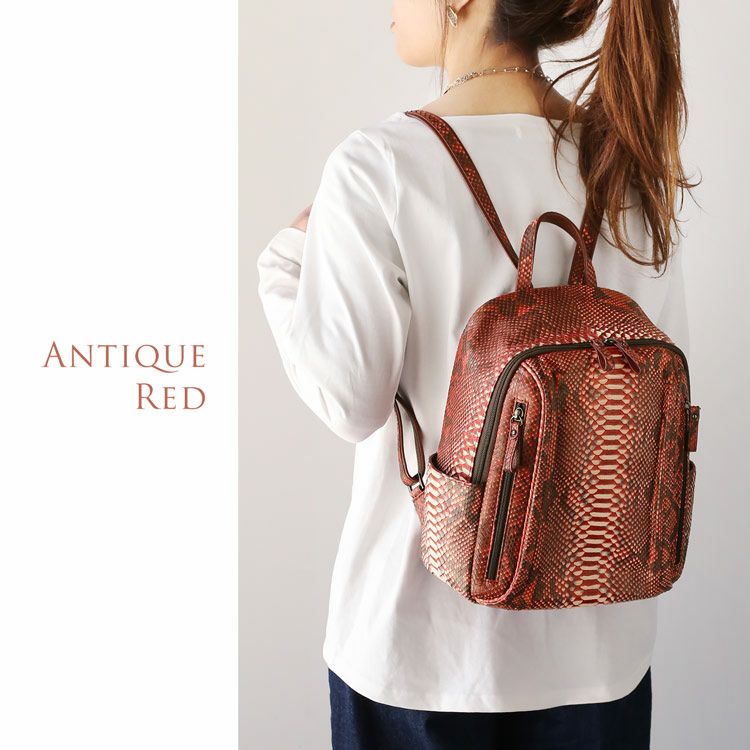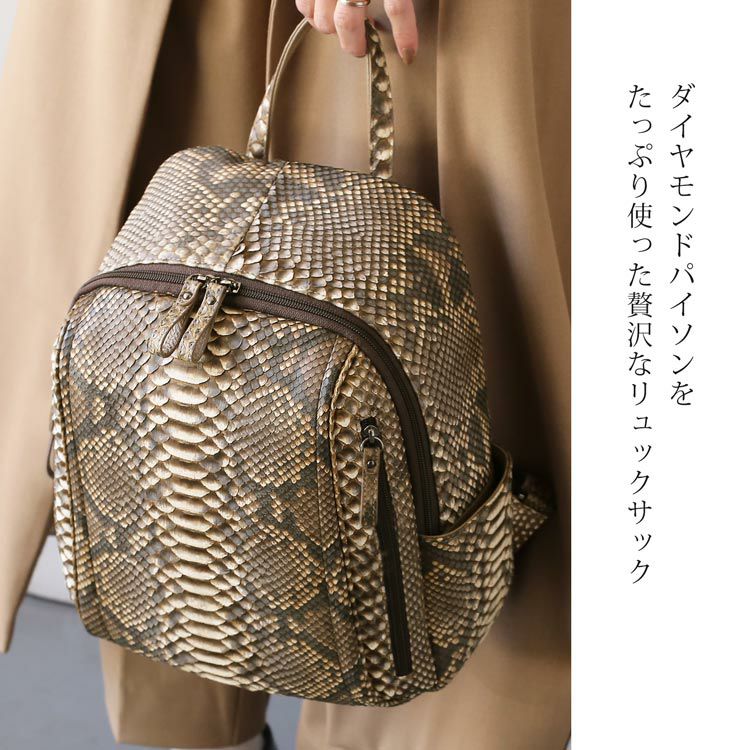 ダイヤモンドパイソン 本革 リュック レディース 軽い おしゃれ 小さめ 軽量 軽いかばん リュックサック 蛇革 パイソン 鞄 レザー 蛇柄 アンティークベージュ アンティークレッド 大人 女性 上品 小さいリュック バックパック (06001816r)