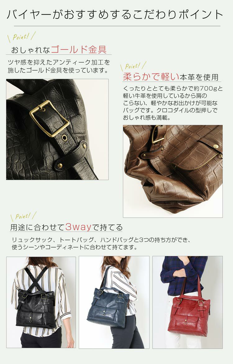 クロコダイル マット 加工 リュック 2WAY レディース バッグ
