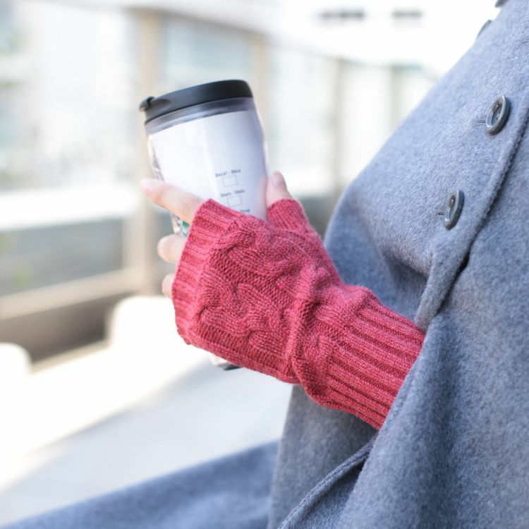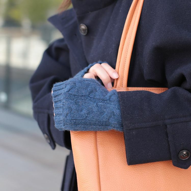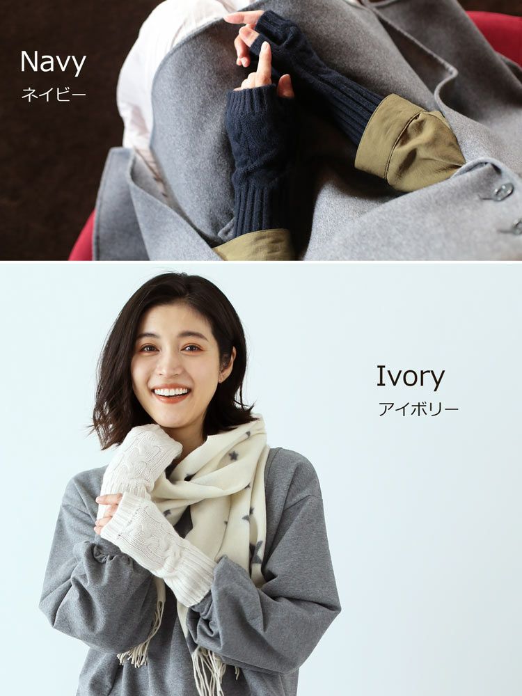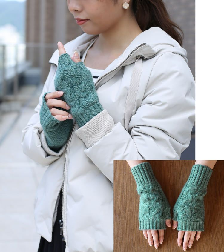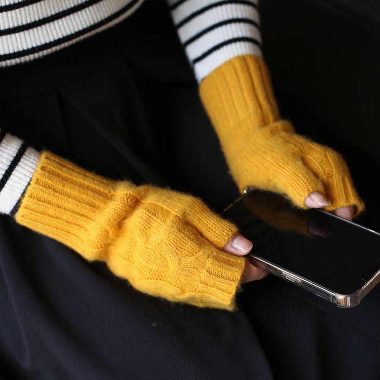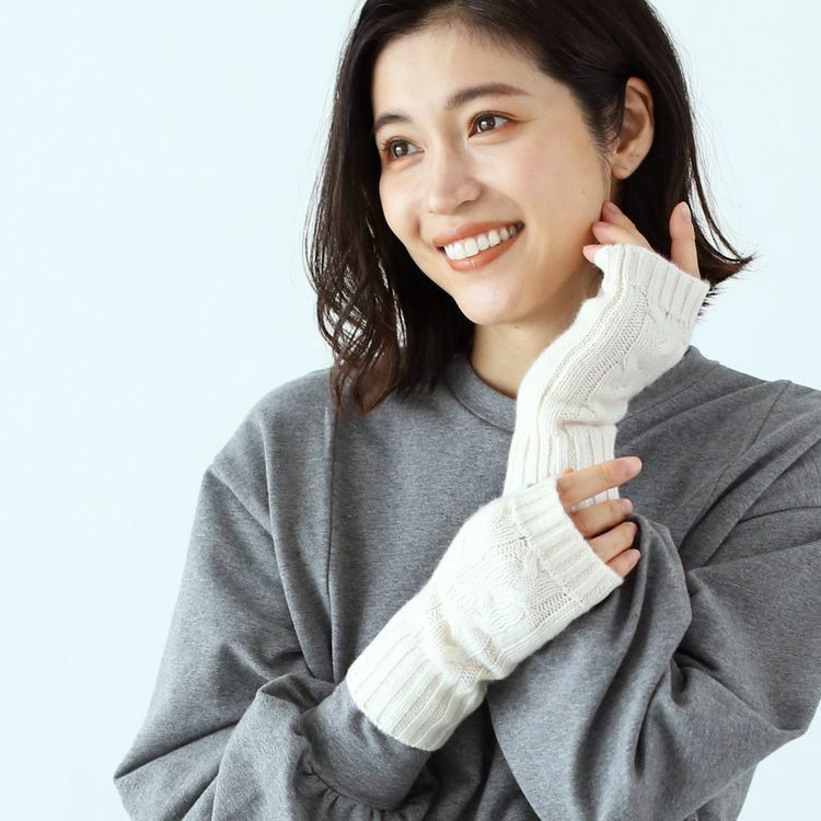カシミヤ100%素材を使用した、軽くて暖かい指ぬき手袋。