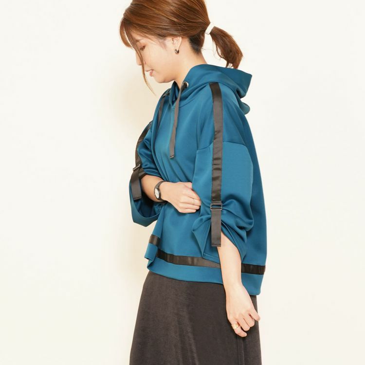 | 商品名:ダンボールニット フード付き プルオーバー パーカー 袖ライン |