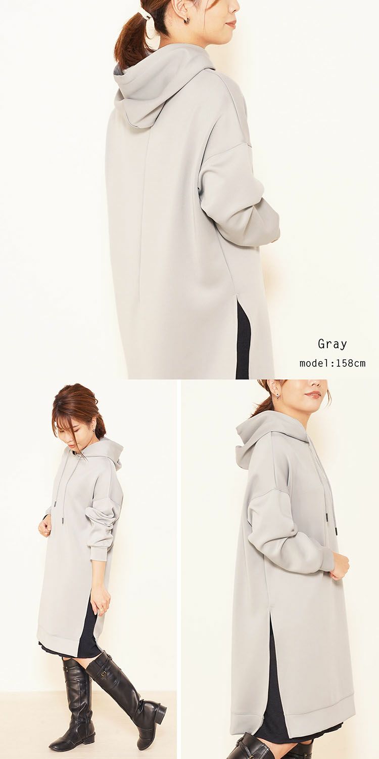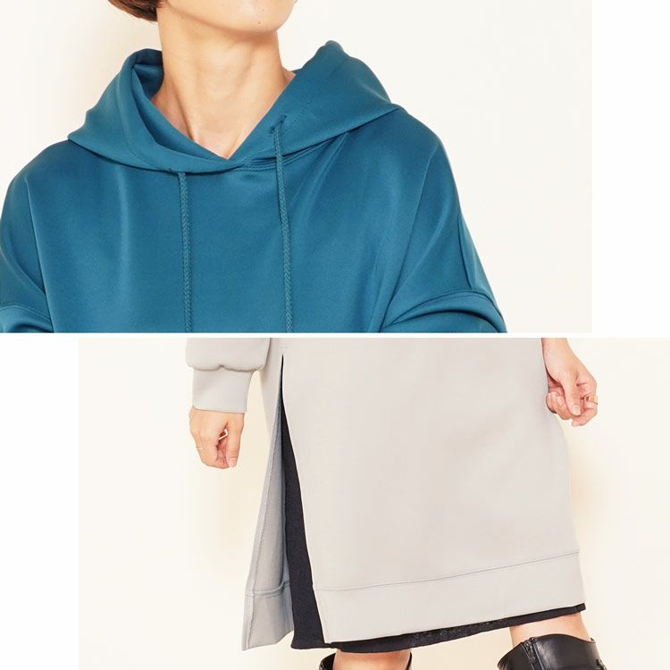 | 商品名:ダンボールニット フード付き プルオーバー ロングパーカー スリット入り |