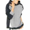レディース パーカー プルオーバー ニット 切替 フリル デザイン 7F