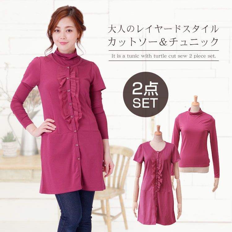 タートルカットソーとチュニックの2点セットでお買い得なアイテム。