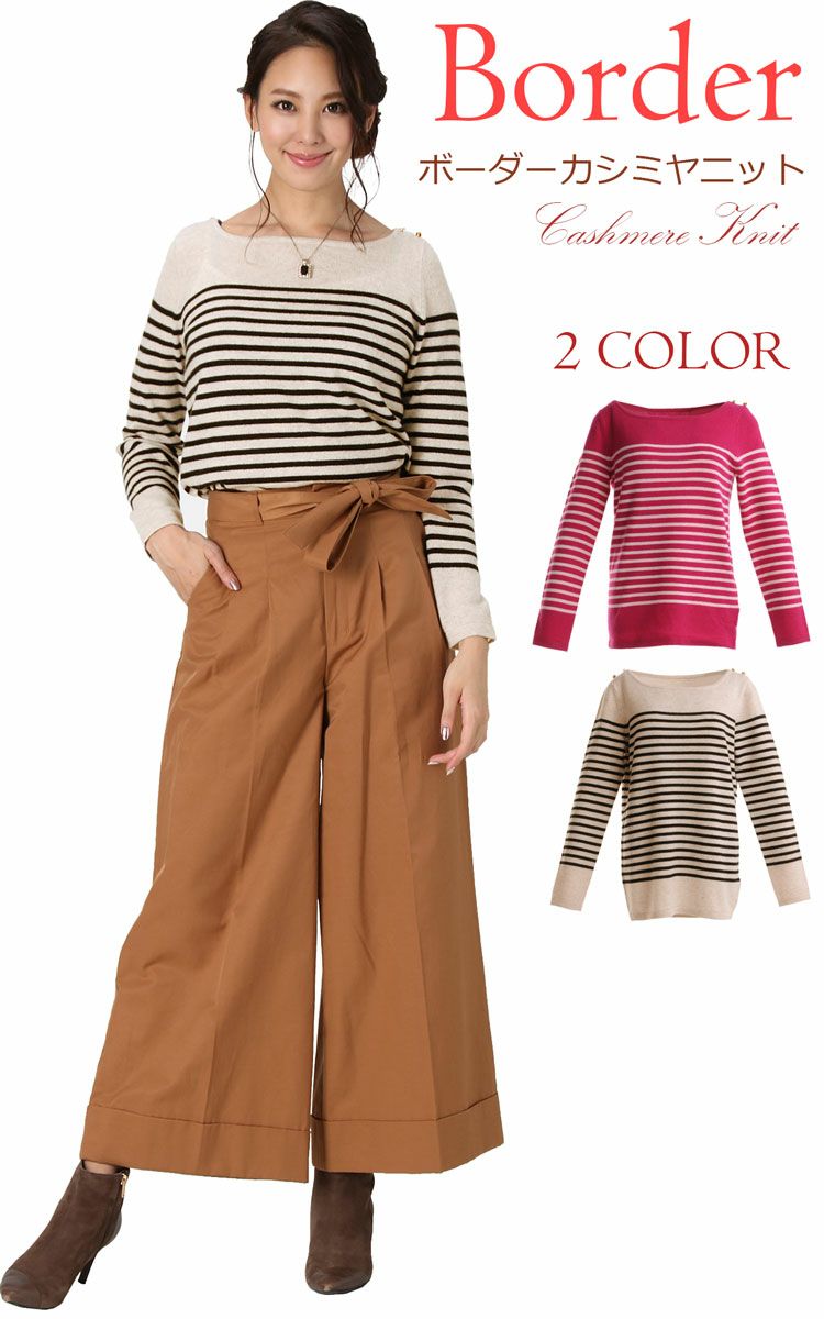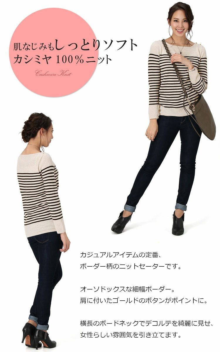 | 商品名:カシミヤ 100% ボーダー ニット セーター / レディース |