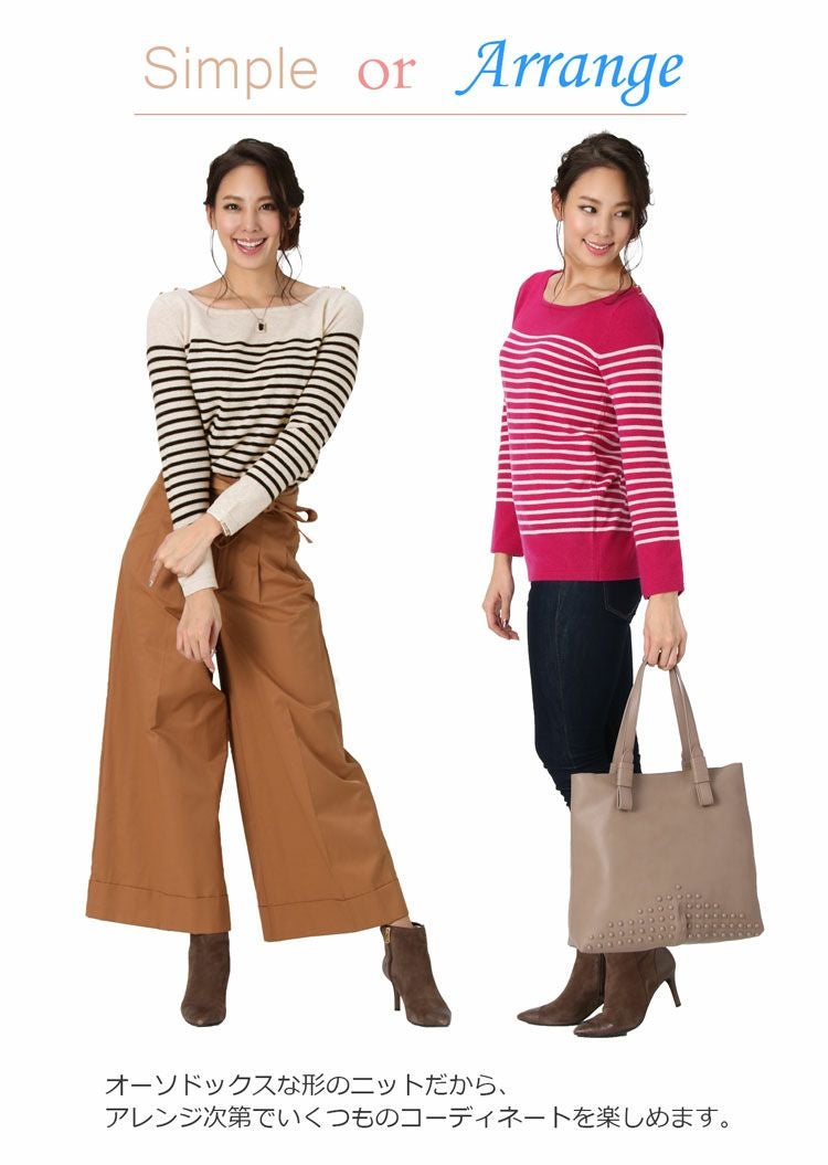 カジュアルアイテムの定番、ボーダー柄のニットセーターです。