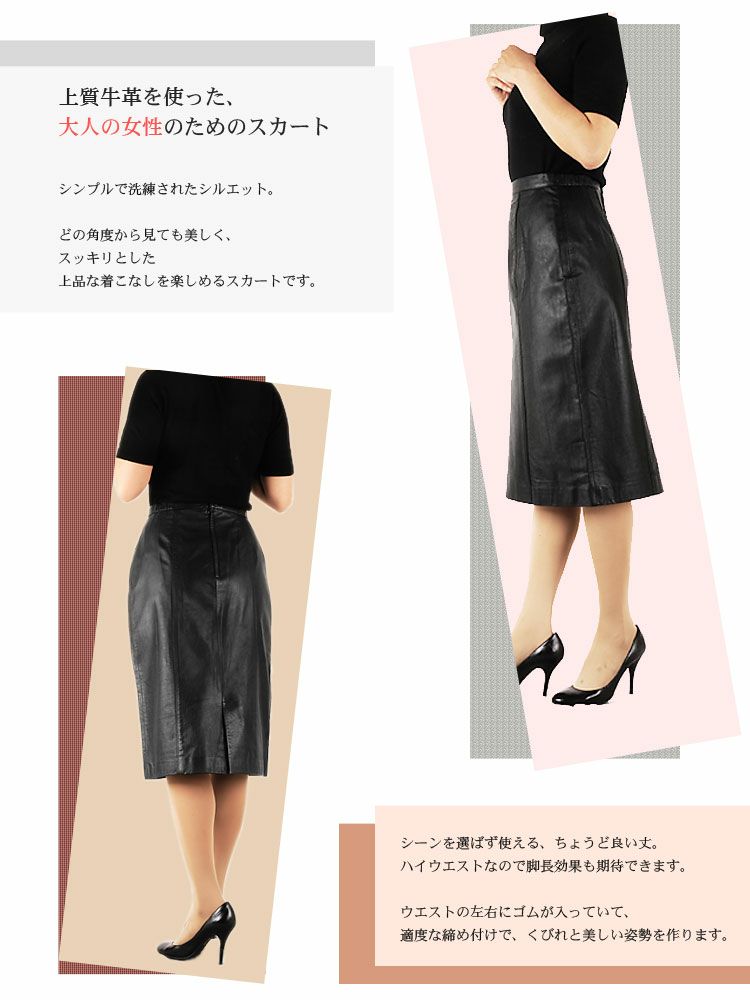 牛革 スカート ナッパレザー 皮革 レザー 7F