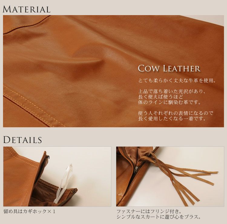 牛革 スカート ナッパレザー 皮革 レザー 7F