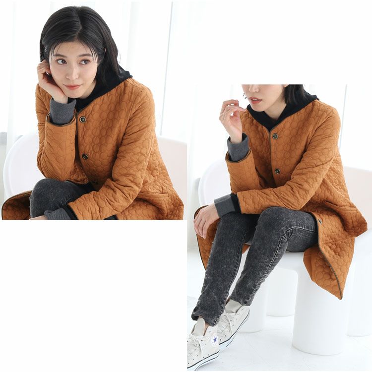 ※キーワード:9号 キルト 防寒 オレンジ ブラウン レンガ お洒落 2way スプリングコート おしゃれ カジュアル 普段使い メンズライク 着まわし 万能 コート ママ アウトドア キャンプ 秋コート ライトアウター サーモ