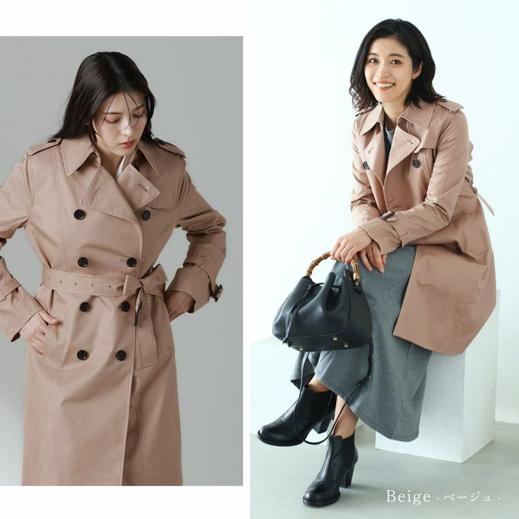 トレンチコート レディース コットン100% Filomo キルティング ライナー付き 撥水加工 膝丈 ミディアム アウター 5F (2596r)