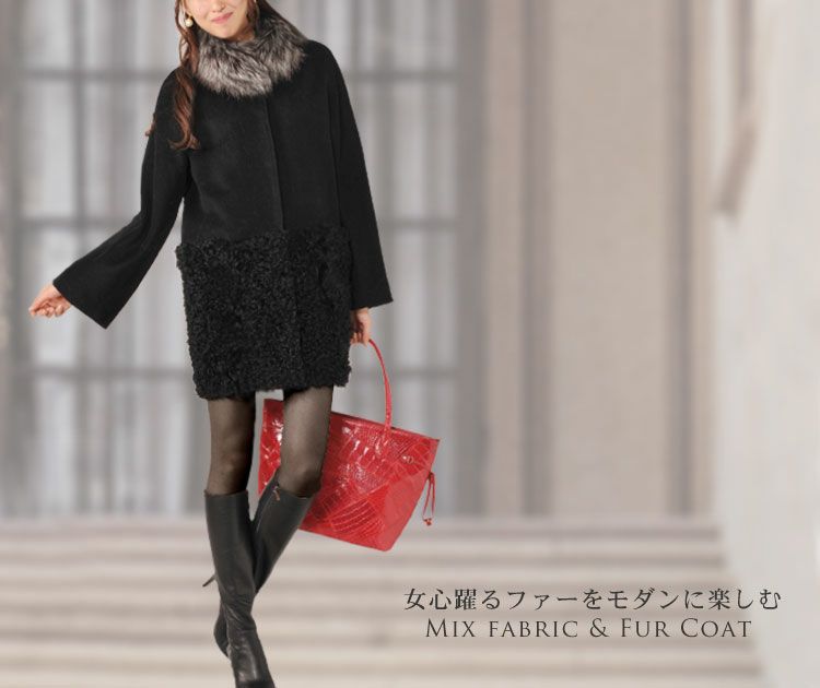 カシミヤ混&カルガンラム コート リアルファー衿付き(No.01000368) |