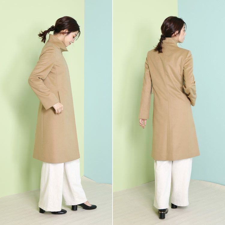 カシミヤ ブレンド ウール コート スタンドカラー レディース (02000311r)