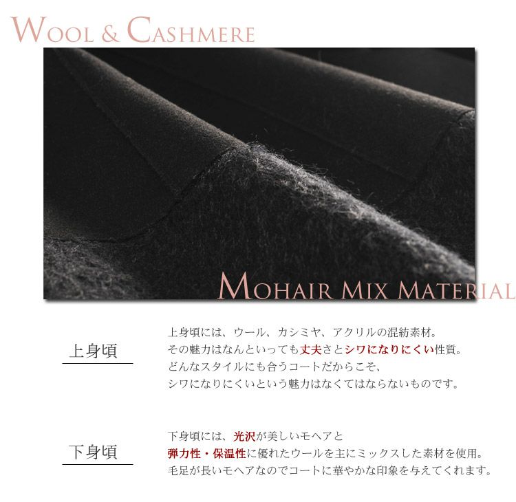 カシミヤ & ウール コート モヘア 切り替え フォックス ファー 付き/ レディース(No.02000050) |