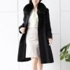 商品名:日本製 スーリー アルパカ コート ロング フォックス ファー トリミング ステンカラー 比翼仕立て 秋冬 レディース ダークグレー/ブラック |