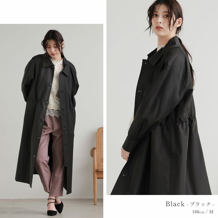 ロング丈のコートでも、ウエストを絞ればすっきりと着こなせます。