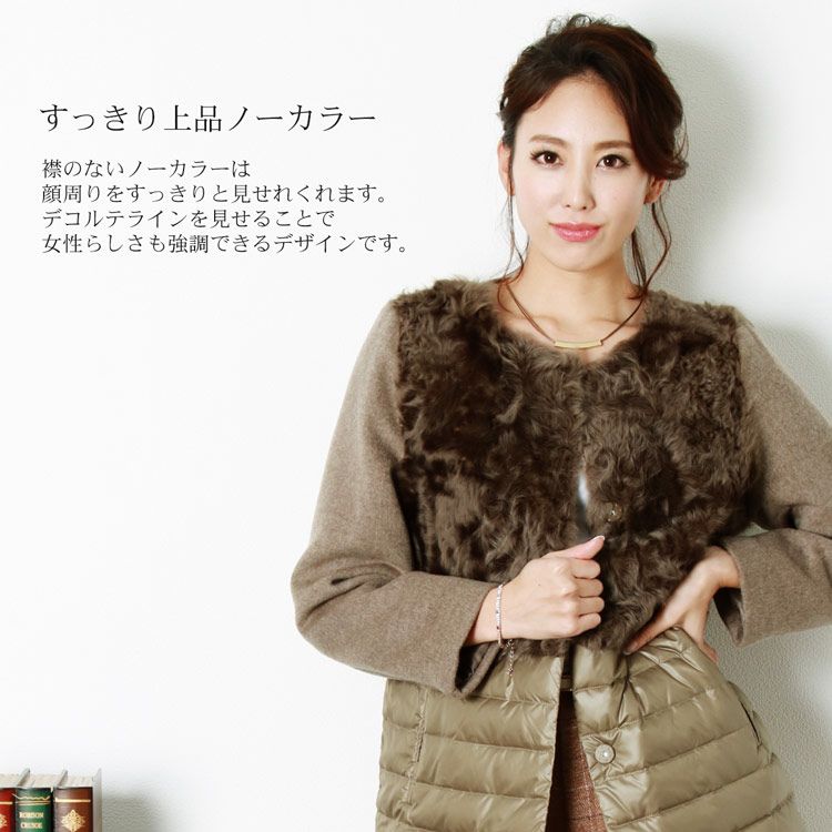 | 商品名:カルガンラム ダウン コンビネーション ノーカラーコート / レディース |
