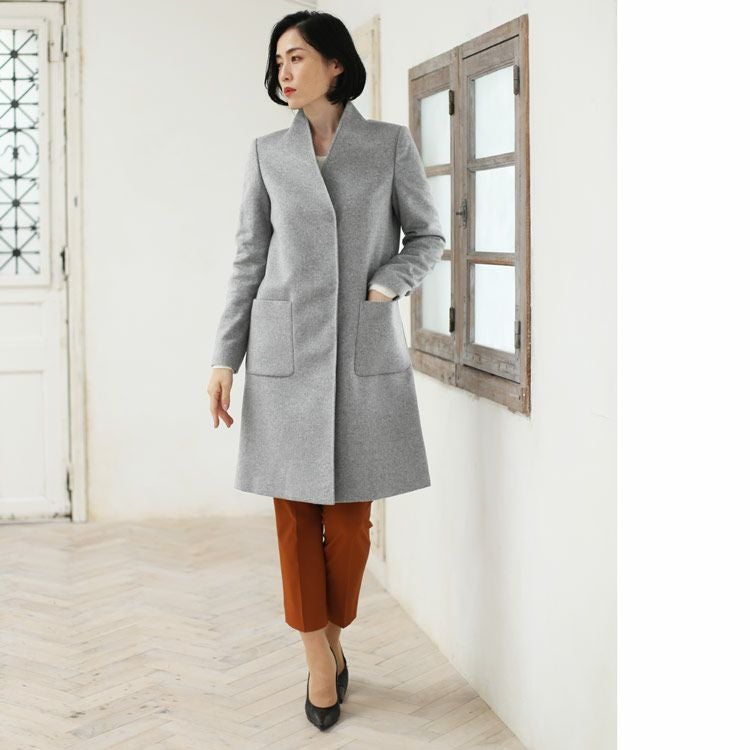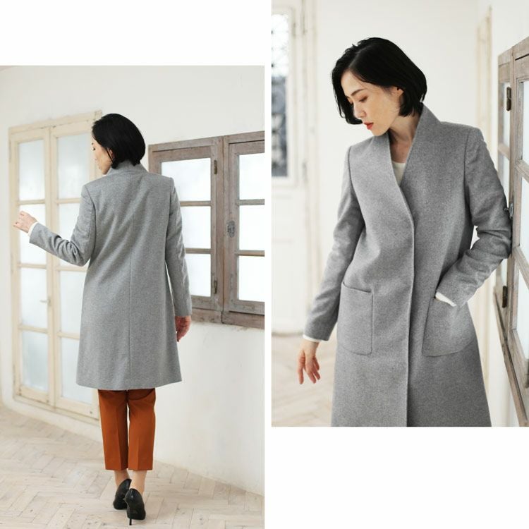 | 商品名:カシミヤコート レディース 100% ロング コート Vネック ノーカラー 冠婚葬祭 フォーマル Filomo 裏地付き ライトグレー/ブラック 9号/11号/13号 |