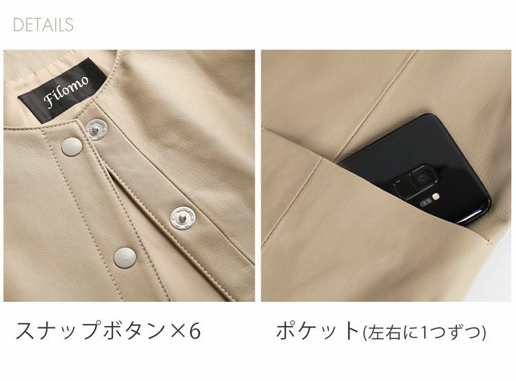 レザー コート アウター レディース ラムレザー 本革 ノーカラー ロングコート ブランド Filomo 6F
