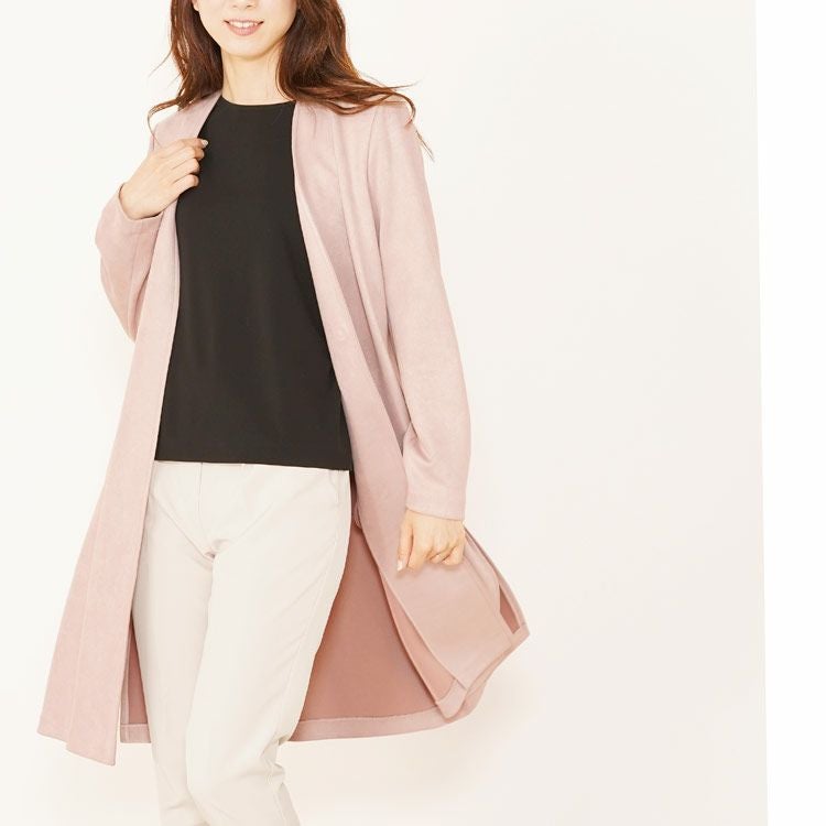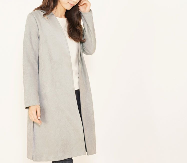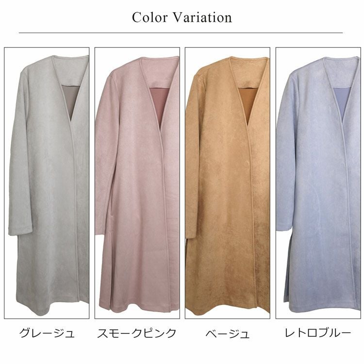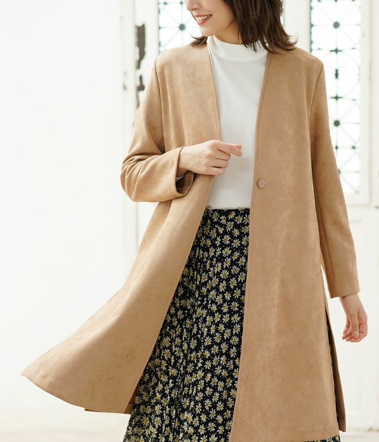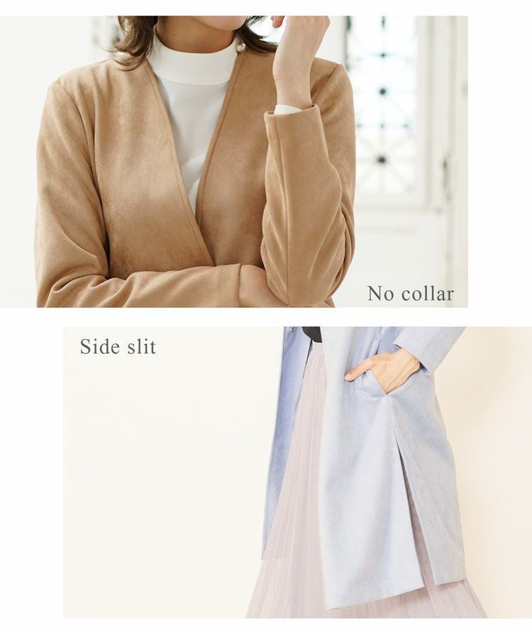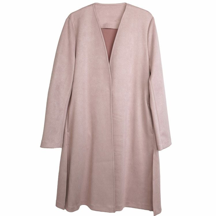 ノーカラー コート レディース 薄手 フェイク スエード 春 秋 (08000219r) 5F