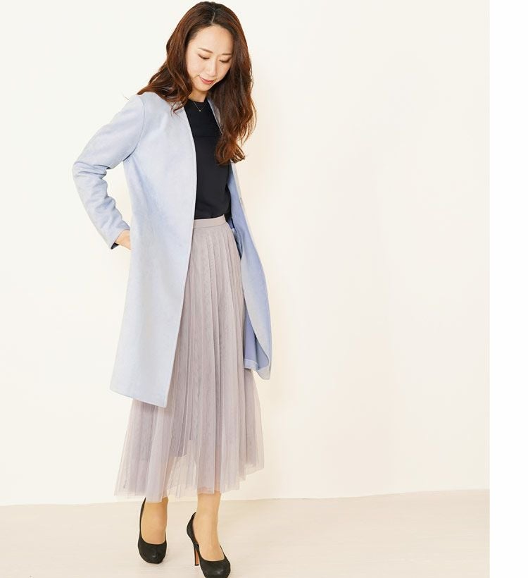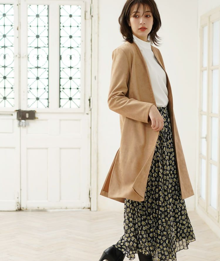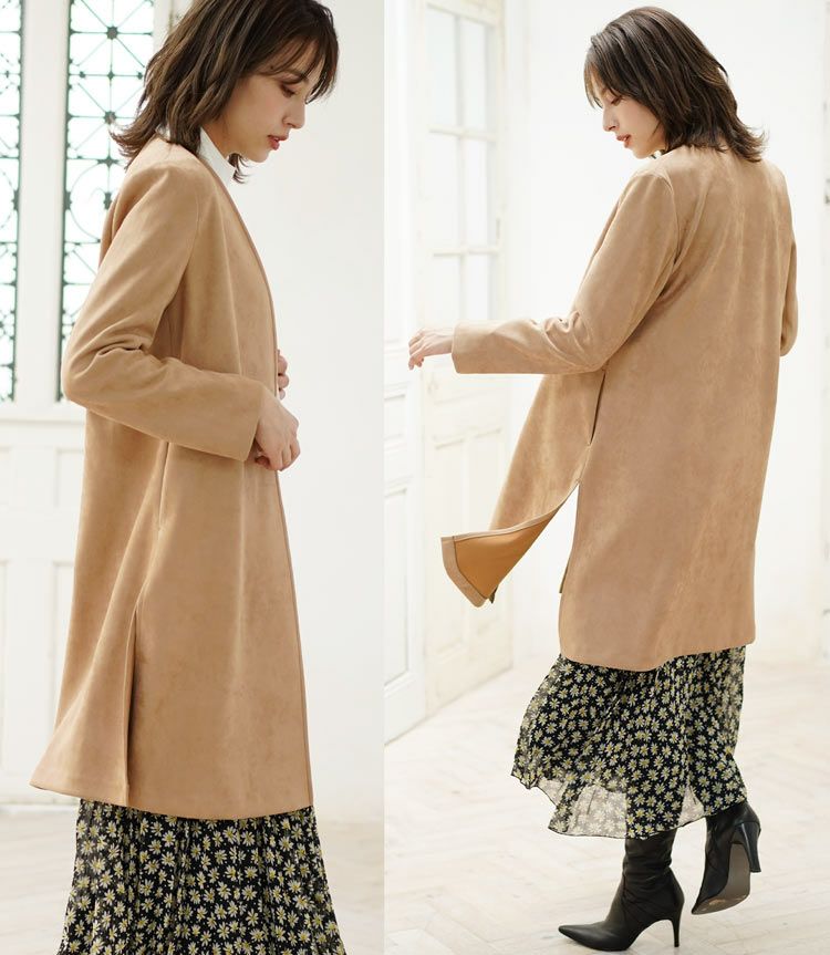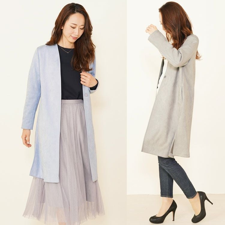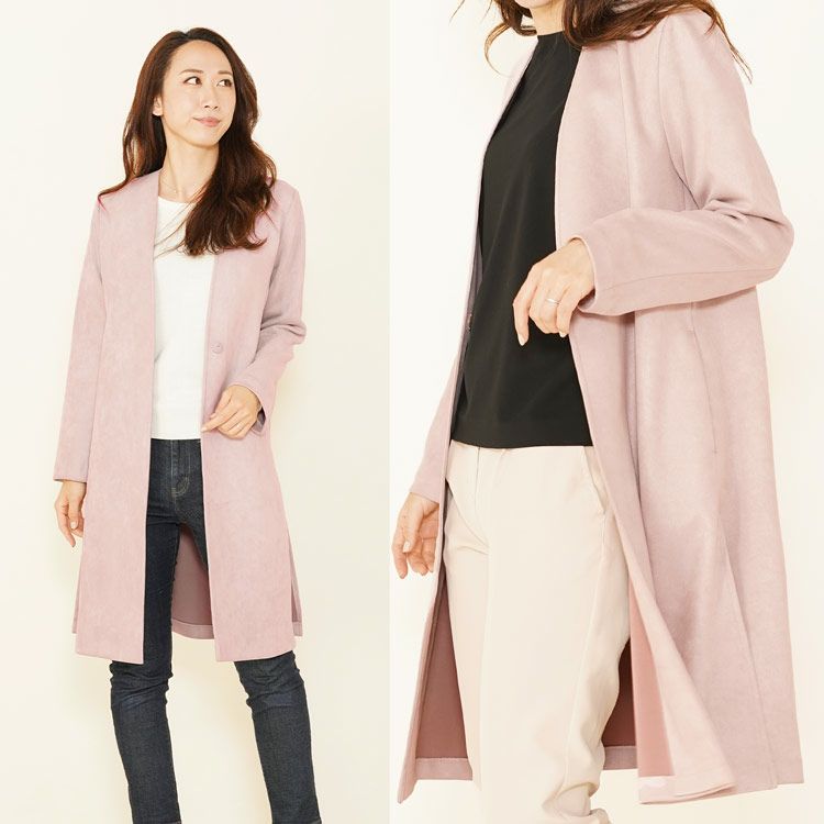 ノーカラー コート レディース 薄手 フェイク スエード 春 秋 (08000219r) 5F
