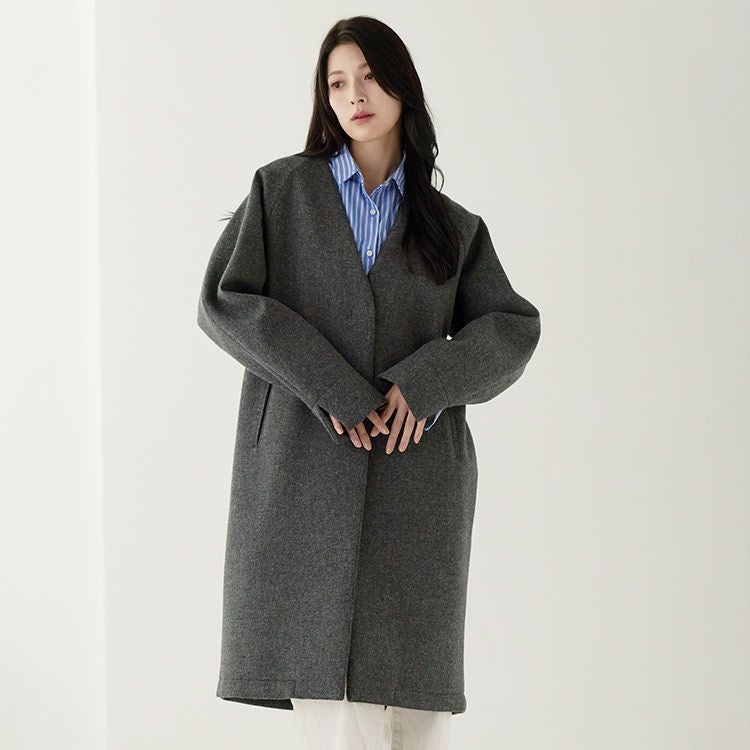 | 商品名:HALENE 尾州ウール ノーカラーコート |