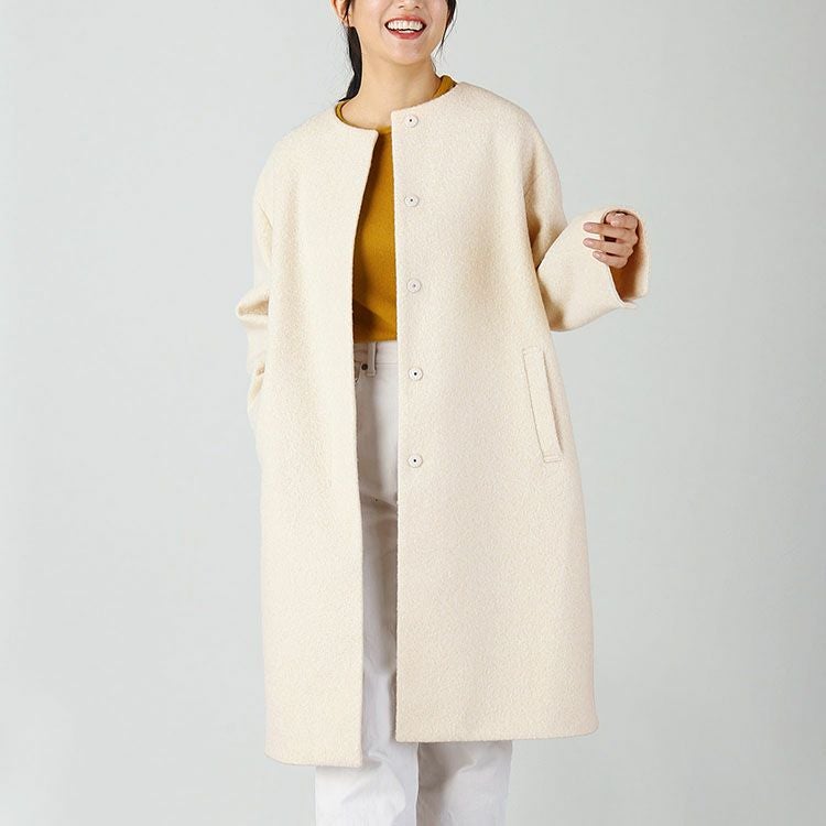 | 商品名:Filomo 起毛ウールタッチ ノーカラー ロング丈 コート レディース |