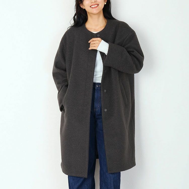 Filomo 起毛 ウールタッチ ノーカラー ロングコート 手洗い可能