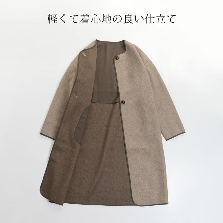 ウールタッチ ノーカラー パイピング コート レディース 手洗い可能 (08000251r) 7F