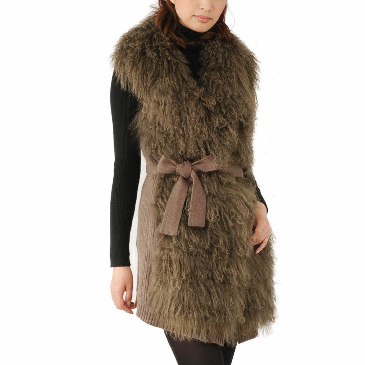 チベットラム&ニット ロングベスト アウター ウール 女性用 ロング丈 ファー 毛皮 ファーベスト リアルファー 秋 冬 母 女性 プレゼント ギフト