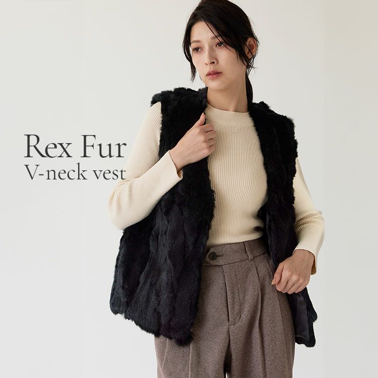 ファーベスト レッキス ファー ベスト Vネック レディース ブラック リアルファー リアルファーベスト アウター 大人カジュアル 秋冬 トレンド ギフト プレゼント