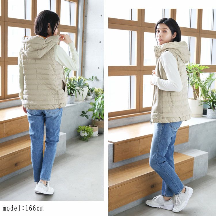 リバーシブル ダウンベスト ベスト 秋 アウター フード アイボリー 軽い 軽量