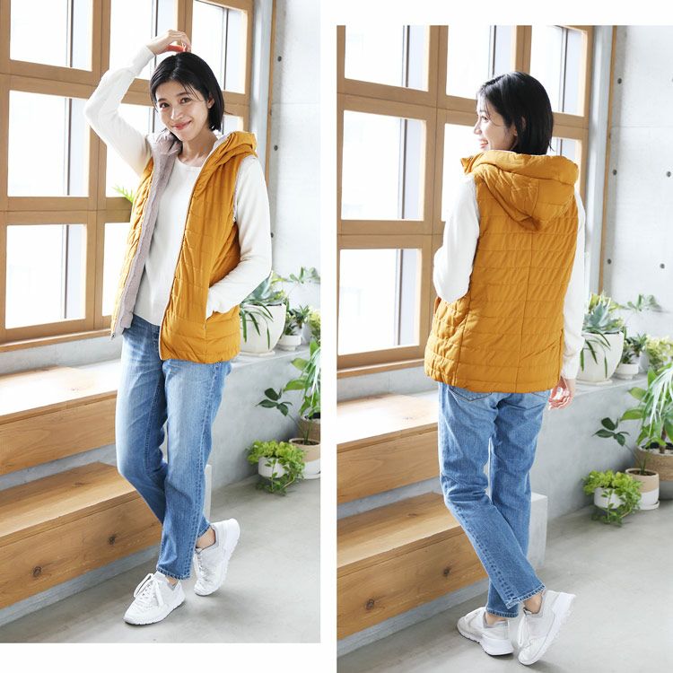 リバーシブル ダウンベスト ベスト 秋 アウター フード 着回し 秋冬コーデ コーデ
