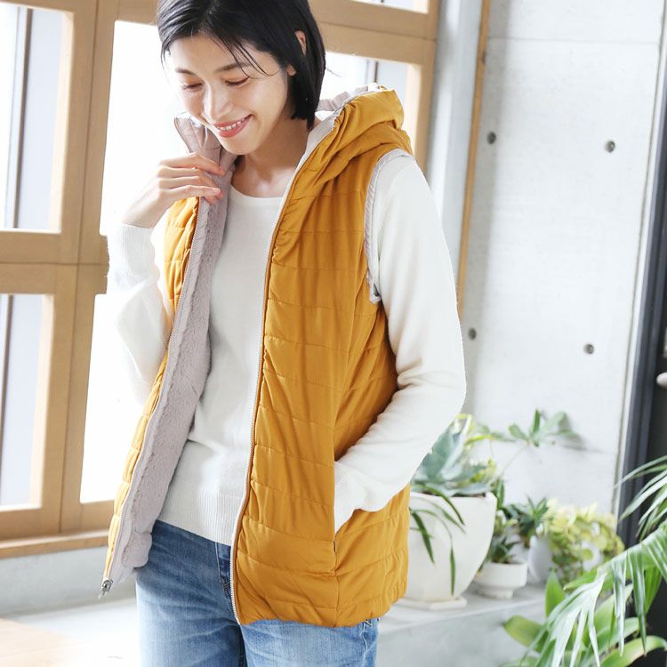 リバーシブル ダウンベスト ベスト 秋 アウター フード もこもこ 素材 気持ちいい
