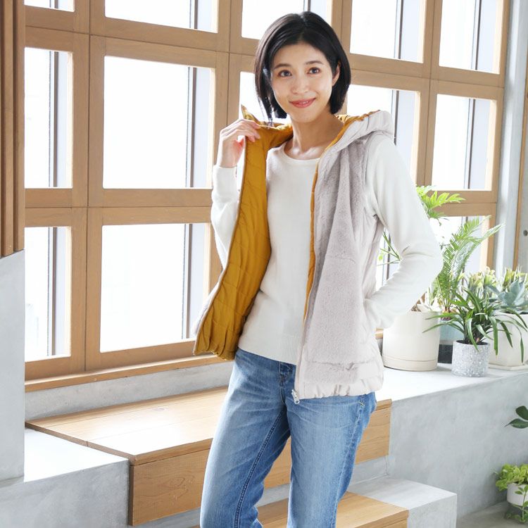2. リバーシブル ダウンベスト ベスト レディース 女性 フェイクファー プレゼント ギフト (08000314r)