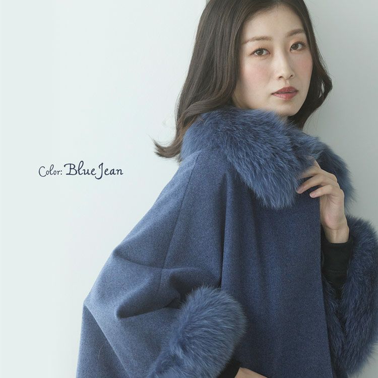 | 商品名:カシミヤ ブレンド ウール ケープ フォックス ファー トリミング / レディース |