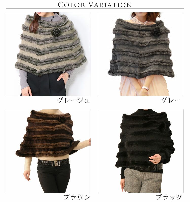 普段着のうえにさっと羽織るだけで上品なスタイルを約束する、ケープやポンチョ。ファーを使っているので、さっと羽織るだけで高級感あるスタイルを約束してくれるアウターです。ロング丈からショート丈など様々シーンで使うことができるので一枚あれば重宝するアイテムです。パーティやコンサートに、また和装にもお使いいただけるアウターです。また車で移動の多いときなどに便利です。