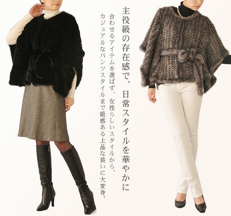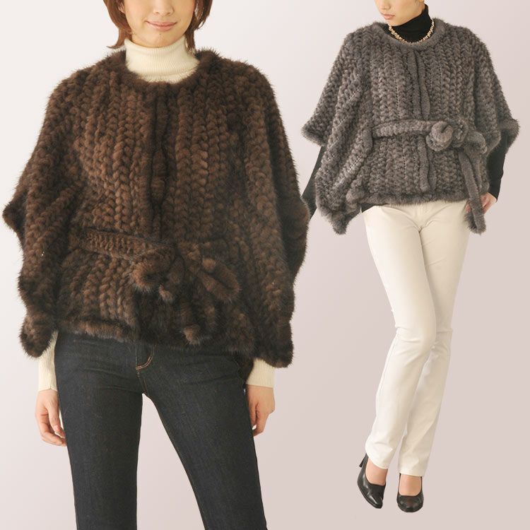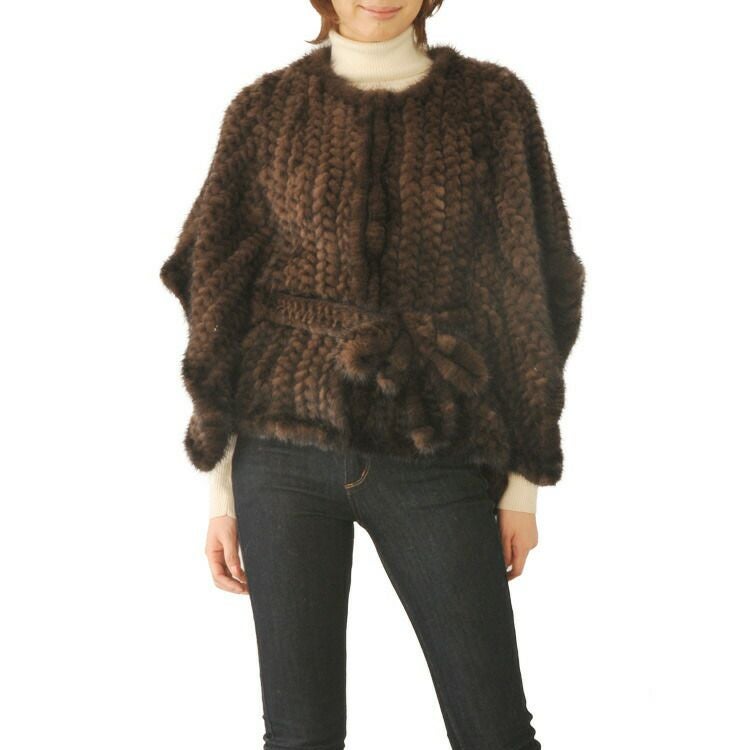 ミンク ジャケット ノーカラー ケープ 編み込み (No.3082) |