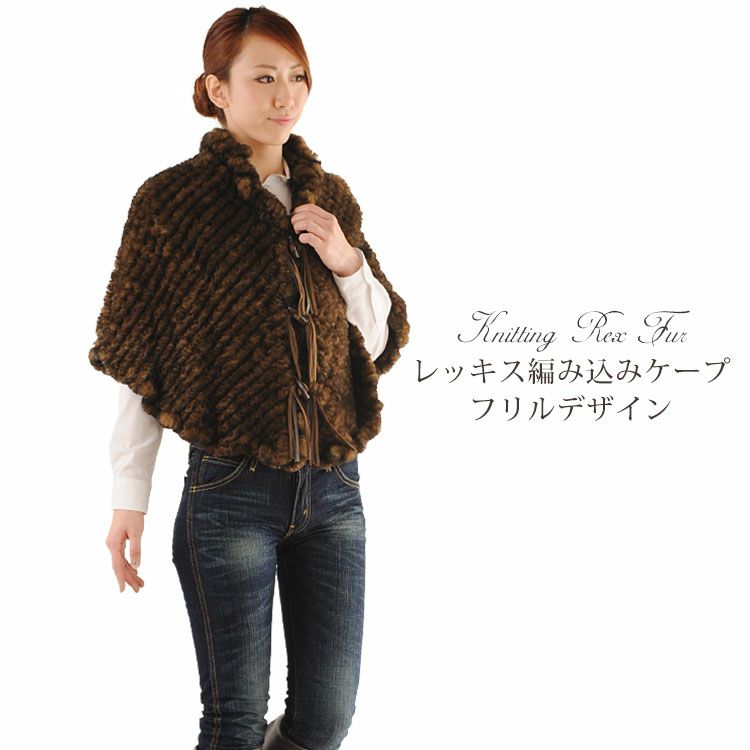 レッキス ケープ 編込み フリルデザイン アウター ケープ ボレロ ストール 女性用 ファーストール 毛皮 ファー ケープ 羽織物 コーデ 秋 冬 母 女性 プレゼント ギフト